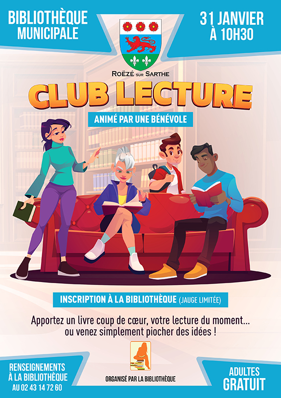 La bibliothèque de Roëzé-sur-Sarthe propose un club lecture pour adultes le 31 janvier 2026.