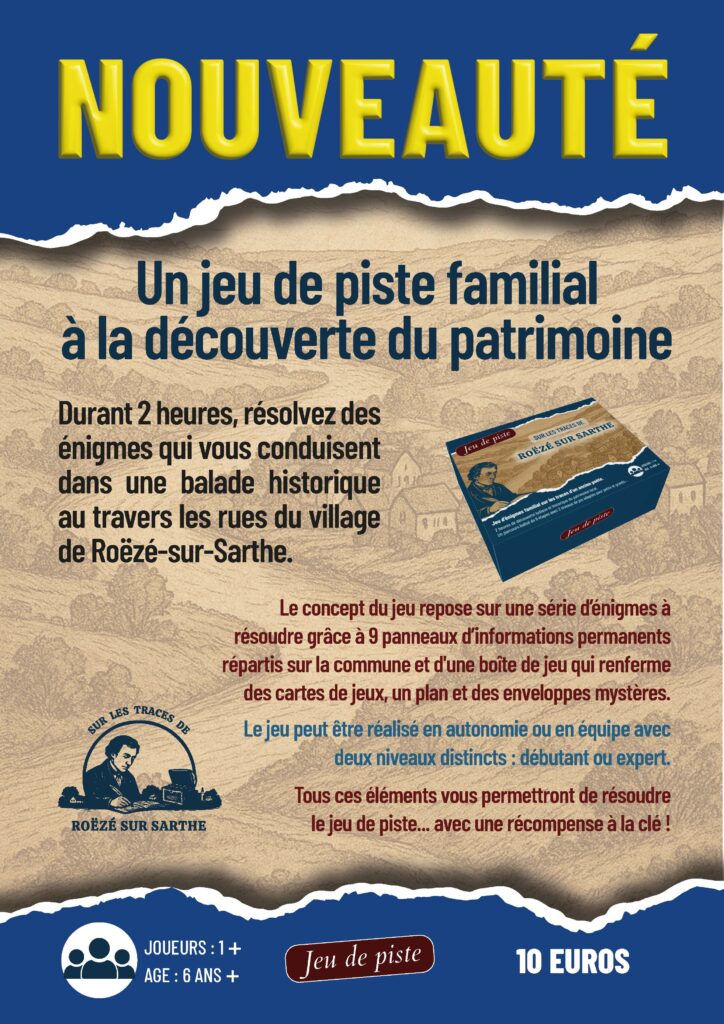 La commune propose une toute nouvelle activité ludique et familiale : « Sur les traces de Roëzé-sur-Sarthe», un jeu de piste original qui invite petits et grands à partir à l’aventure au cœur du village.